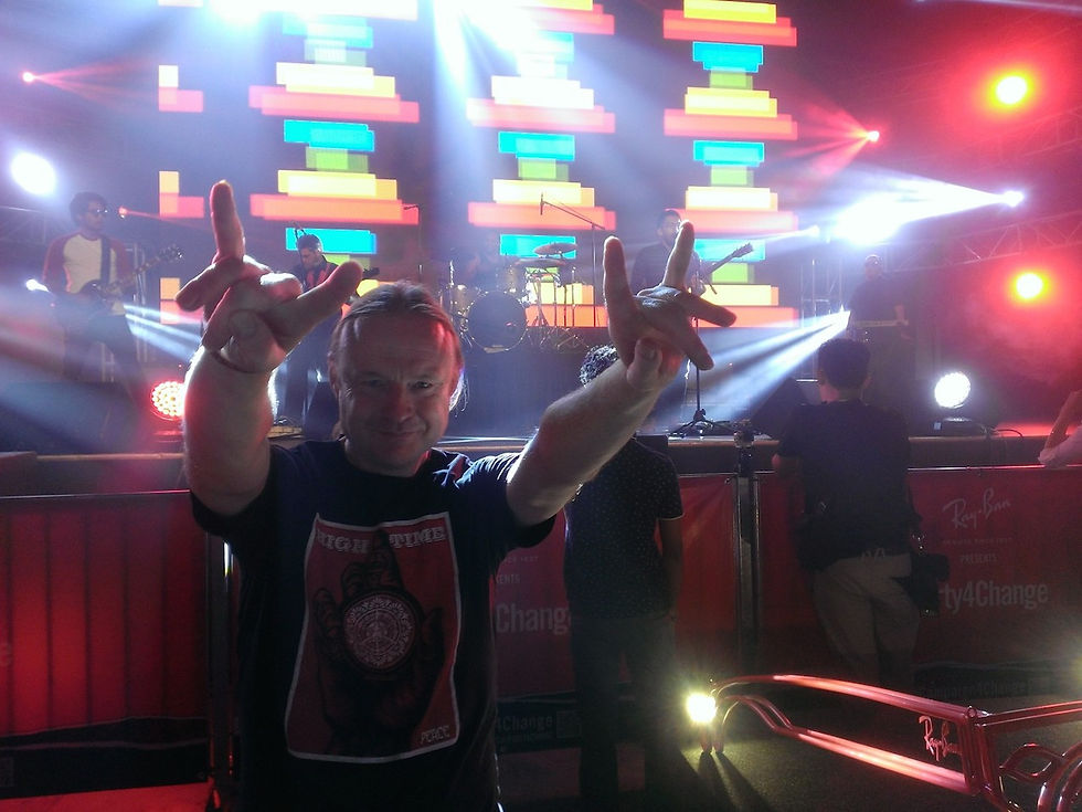 The band is playing an easy home match, but sounds tighter than on previous gigs. Drummer Shan normally jumps from behind his drum kit in Lars Ulrich fashion. Maybe he’s afraid of heights, as he literally got upgraded to a special drum stage. Singer Fuad does his usual stand-up comedy and finds a helpful partner in keyboardist Gael. Bassist Shakeil looks solid like a rock. And guitarist Hairi still has the best hair since Johnny Marr.